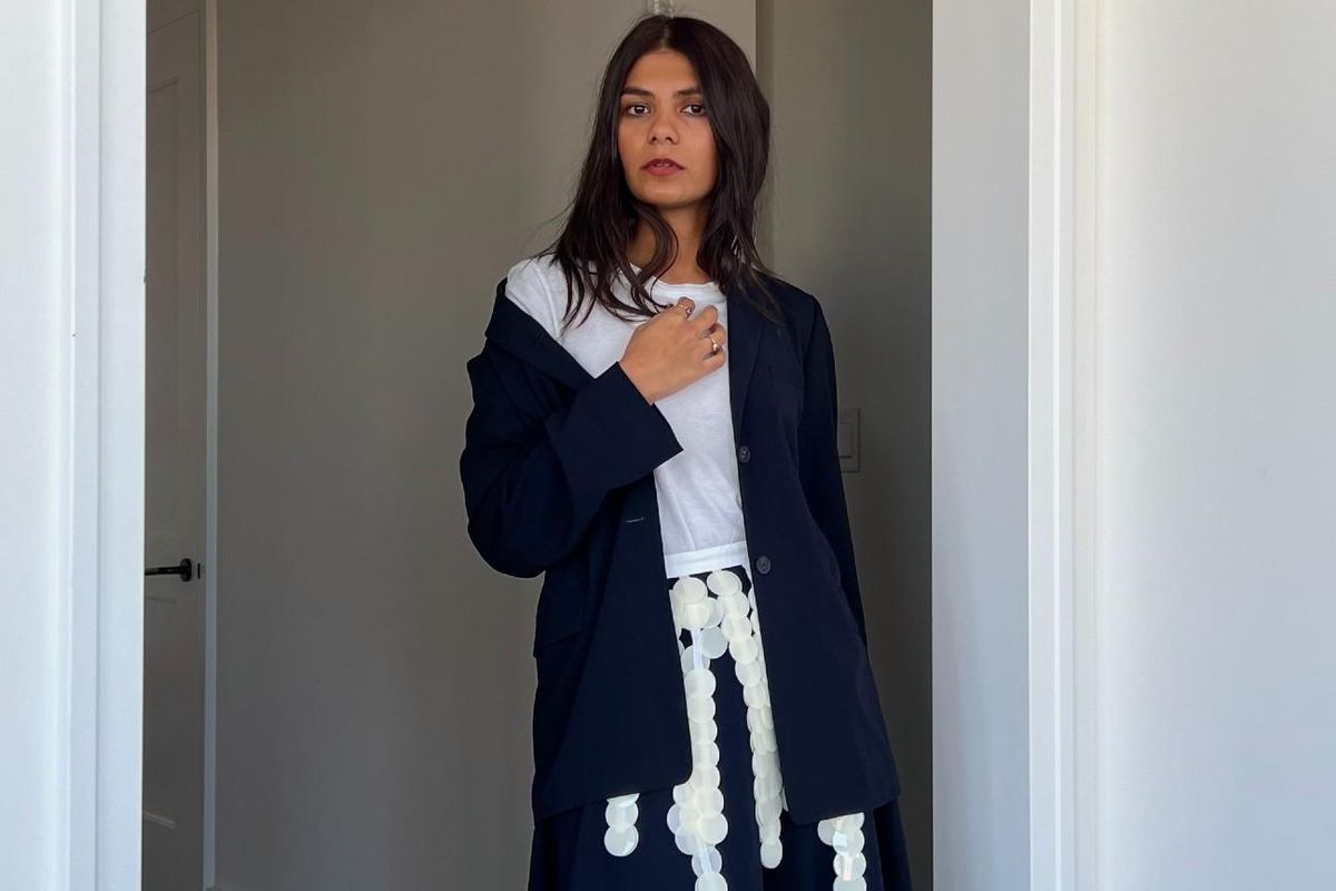 This past year, firmly cemented in my 30s, I sought to challenge the parameters of my personal style, determined to emerge from the cocoon the pandemic had ushered me into (and in which I'd grown too comfortable). After shying away from them for so long, I was drawn to the structure and assuredness of a suit, and of its implications beyond the workplace. Sure, it's a quick and easy outfit that comes together in a mere minute, but it was the cheekiness of wearing a suit to a leisurely lunch or to run errands or to a party in a way that rejected the traditional understanding of it—with imposing shoes, a cornucopia of jewelry, an old and worn soft t-shirt or no shirt at all—that made the suit all that much more alluring to me.